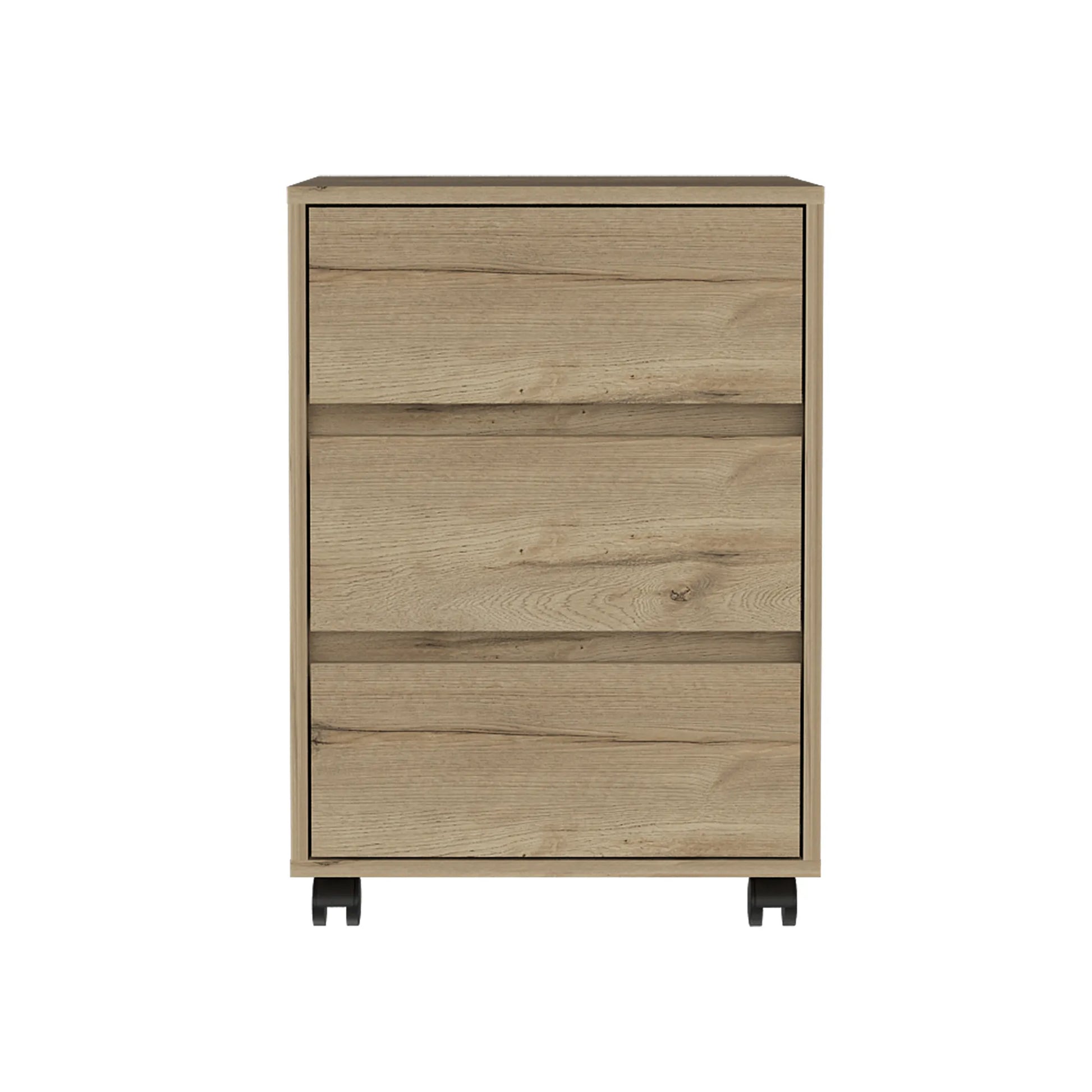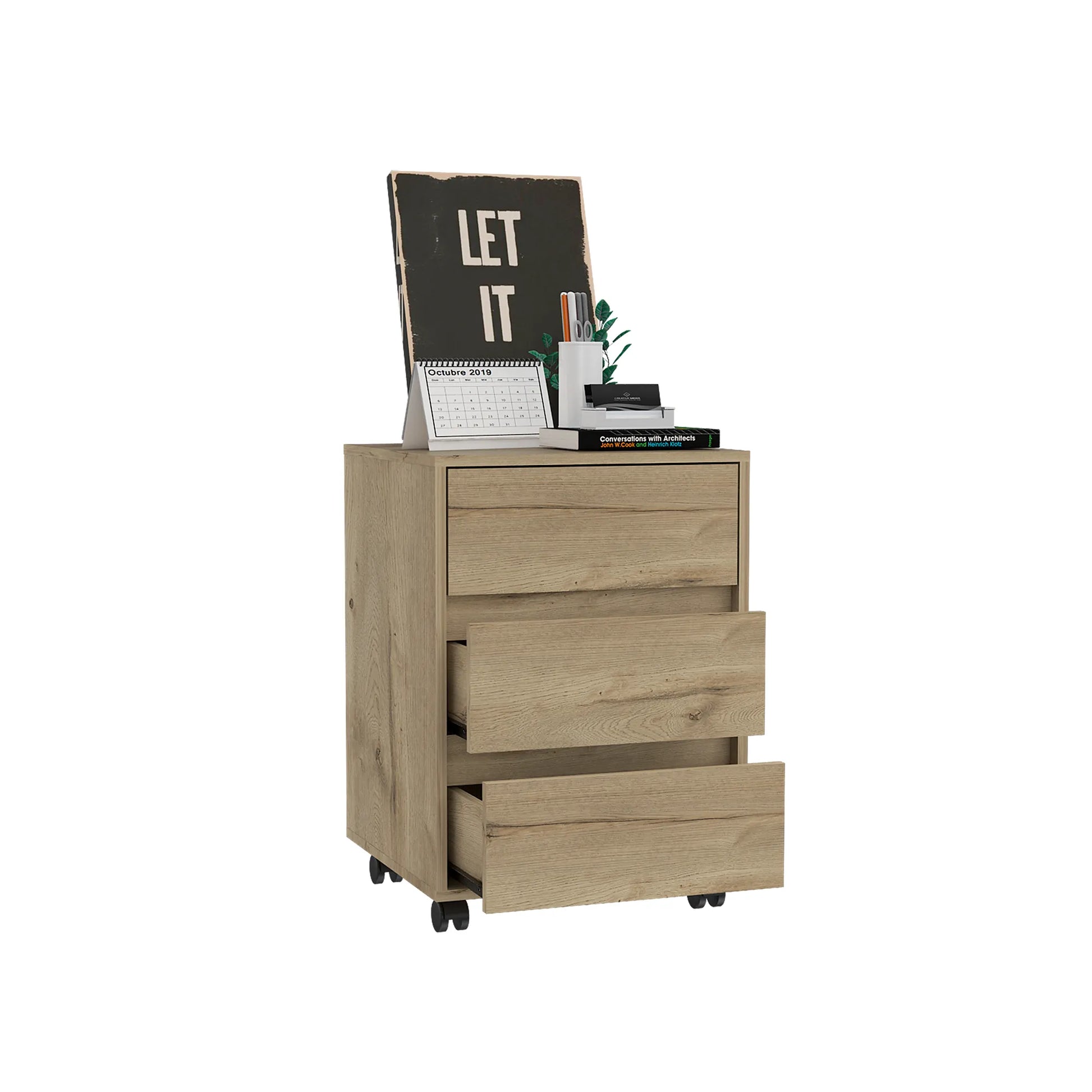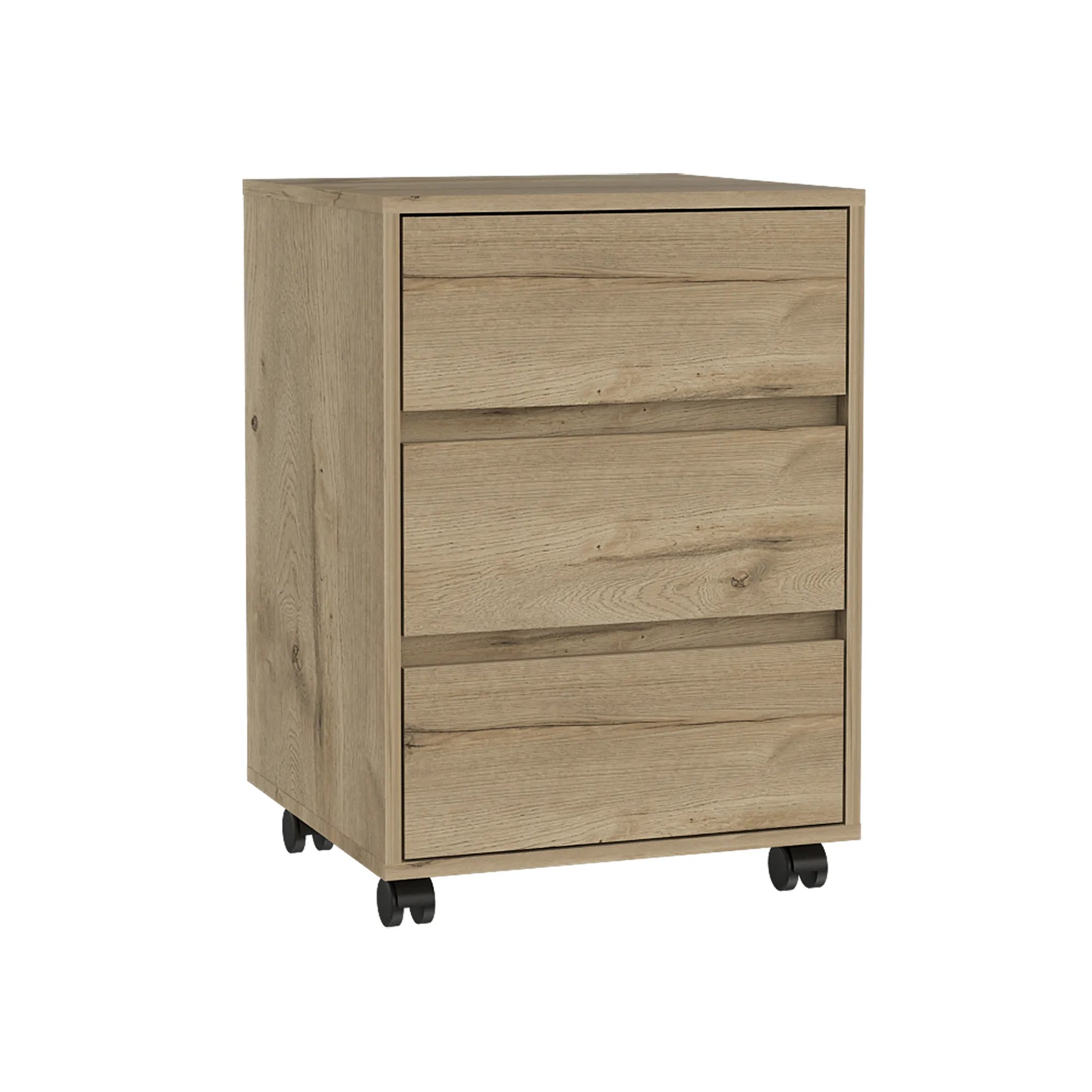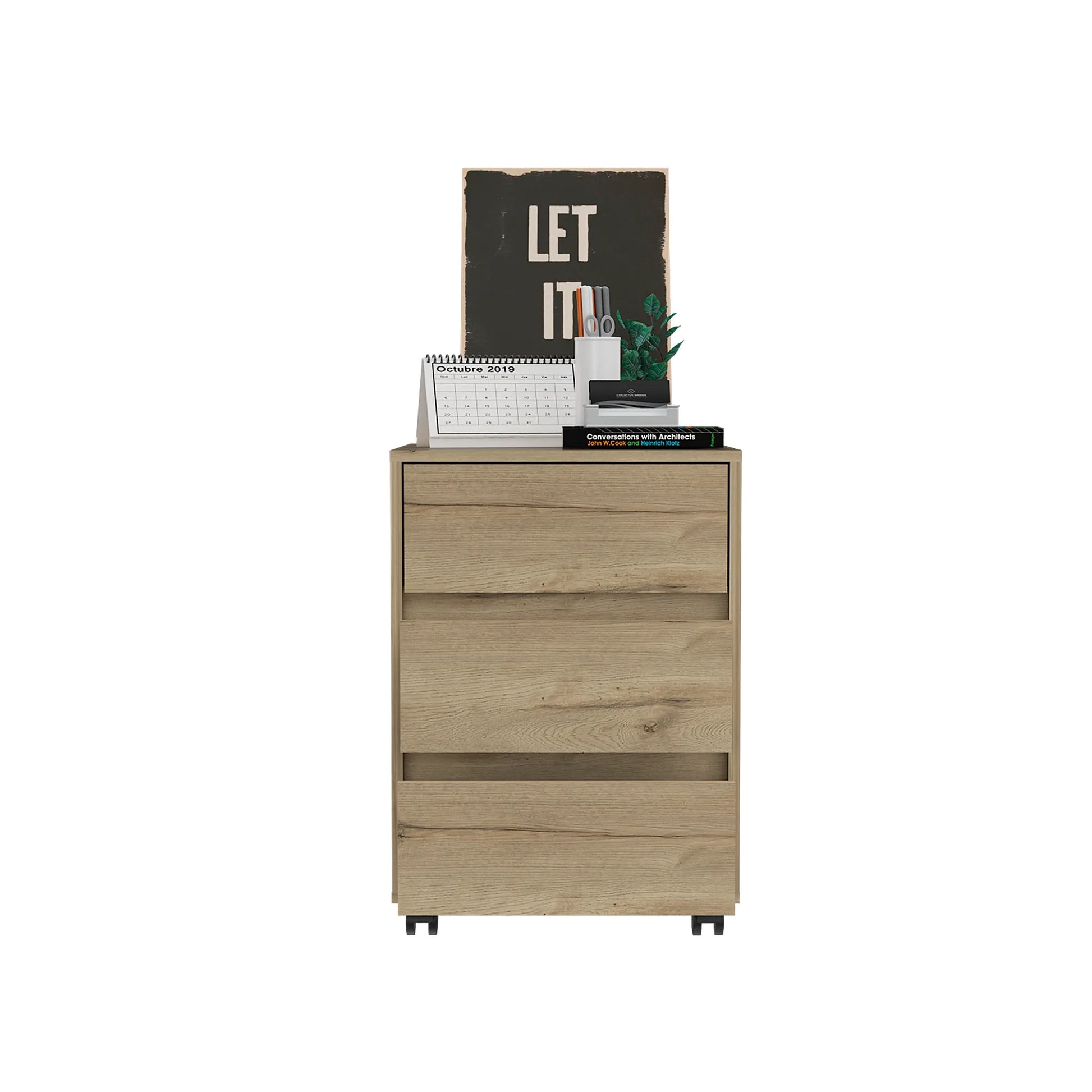 Este archivador de 3 cajones, diseñado en color Duna, facilita la organización de tus documentos y su desplazamiento gracias a sus rodachines integrados.
