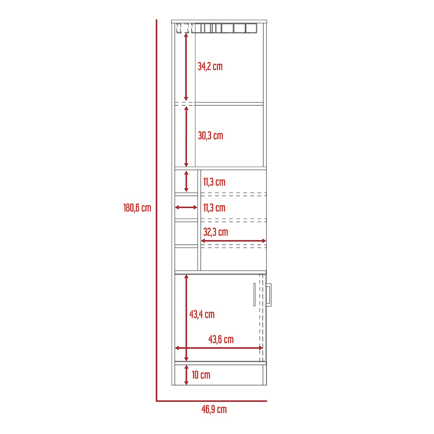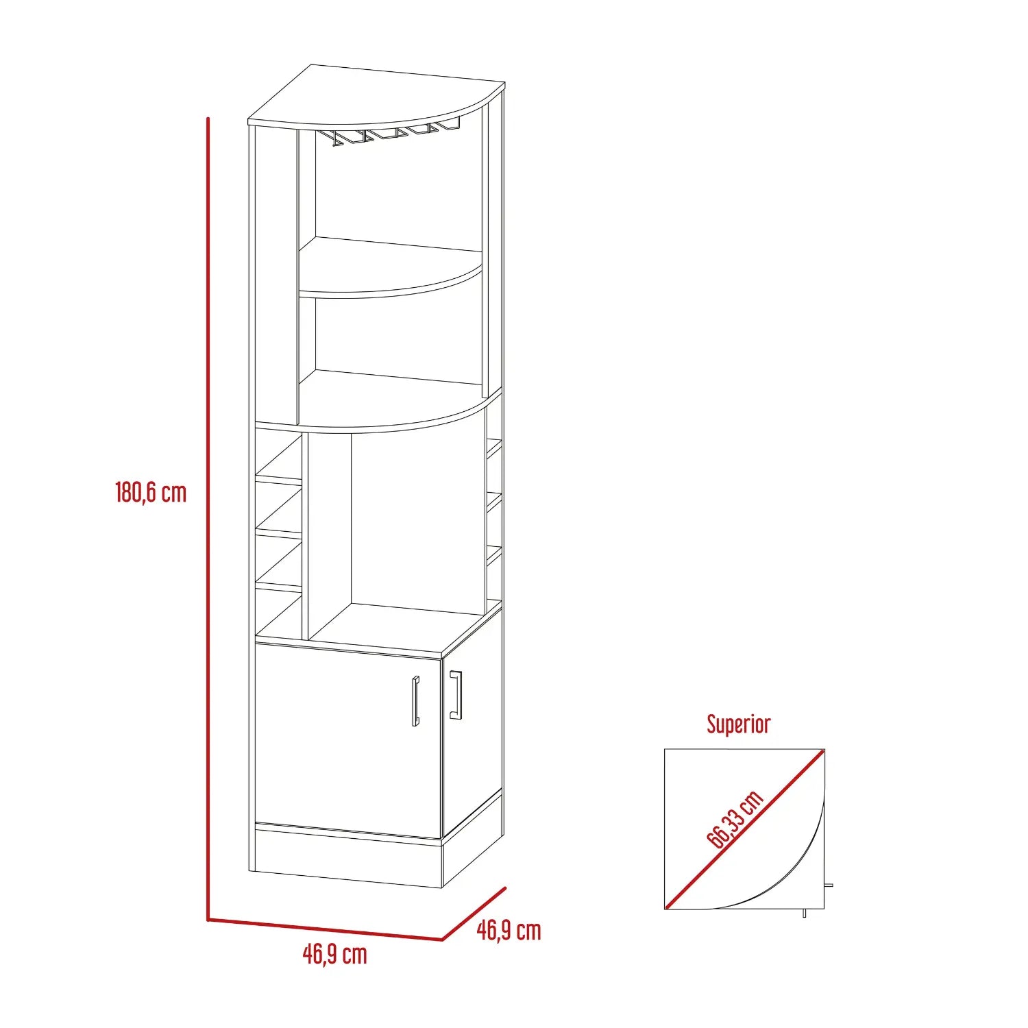 Cuenta con 2 puertas batientes y múltiples repisas para guardar tus objetos, además de un copero y 8 botelleros incorporados.